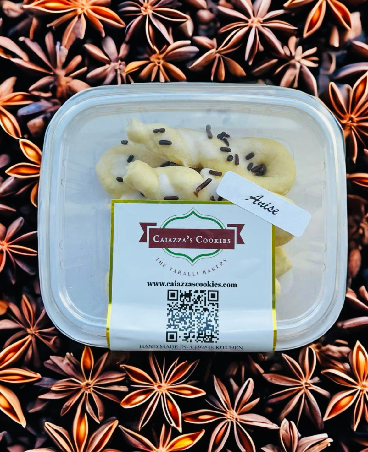 The Anise are Lightly Sweet Vanilla Dough Encased in Crisp Anise Icing Topped with Chocolate Sprinkles and Pair Great with Coffee or Dessert Wine!