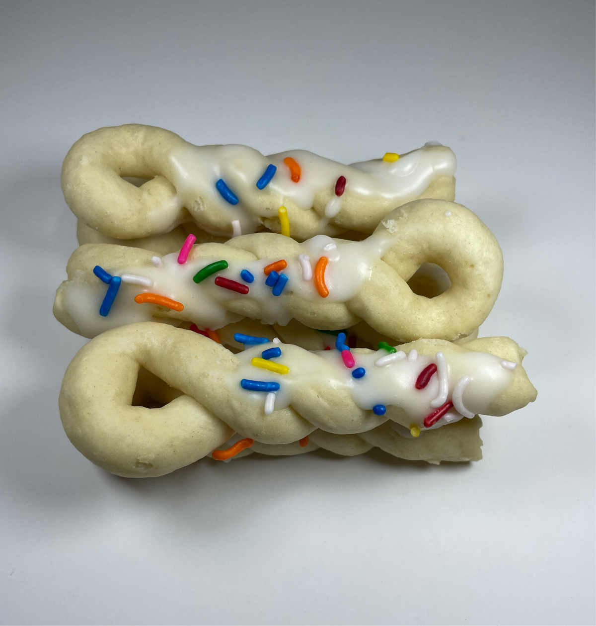 The Vanilla are Lightly Sweet Vanilla Dough Encased in Crisp Lemon Citrus Icing Topped with Colorful Sprinkles and Pair Great with Coffee or Hot Chocolate